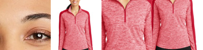 By mixing heather with a solid color and adding reflective hits, this moisture-wicking pullover has a technical look plus plenty of stretch for easy movement.